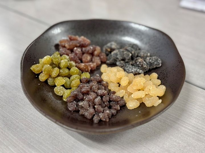 甘納豆は好きな豆の種類を伝えると、パットから秤で計って袋詰めしてくれます。目の前で行われる手作業が温かい気持ちにさせてくれます。