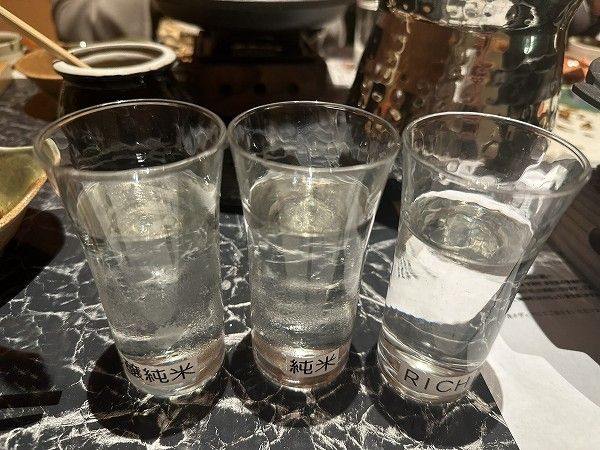 3種飲み比べセット(880円)は、RICH山廃・山廃純米・山廃吟醸純米のラインナップ。