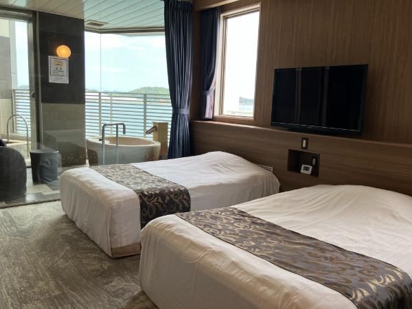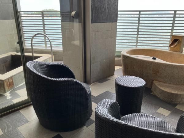 こちらのお部屋には、海を眺めながら入れるお風呂がなんと二つも。