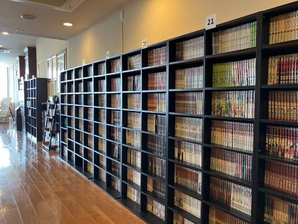 本棚に並べられた大量のコミックに、どれを読もうか迷ってしまいます!