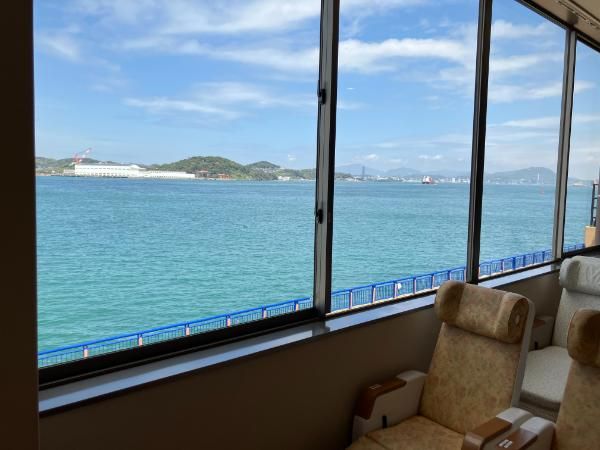 岩盤浴を出たら、リクライナーで一休み。窓の外にはすばらしい景観が広がります。海の色は、天気や時間帯によっても変わり、エメラルドグリーンの海に出会えることもあるそうです。行き交う船舶や移り変わる景色を眺めながら、のんびり過ごすのもいいですね。