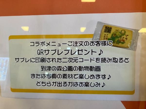 コラボメニューには「QRサブレ」が付いてきます。サブレに印刷された二次元コードを読み取ると、到津の森公園の動物動画または写真の素材を楽しめます。