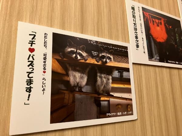 思わず笑ってしまうような写真も。確かにかわいすぎるアライグマのハチとハナですね。