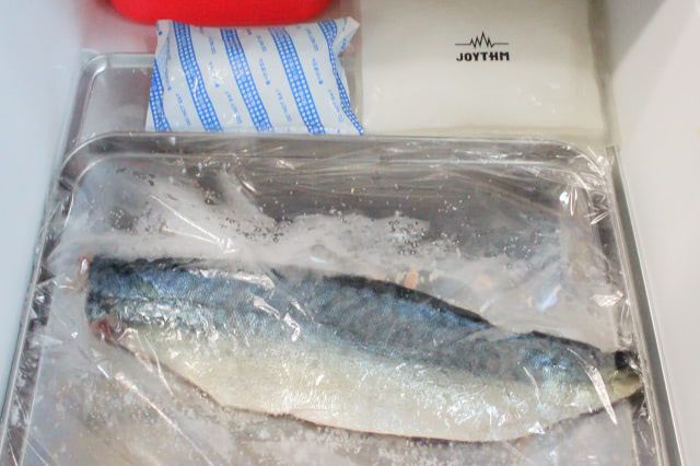 アニサキスの幼虫がサバの身に潜んでいることがあるため、冷凍して死滅させます。レシピではひと晩冷凍と書かれていますが、今回は丸1日冷凍しました。