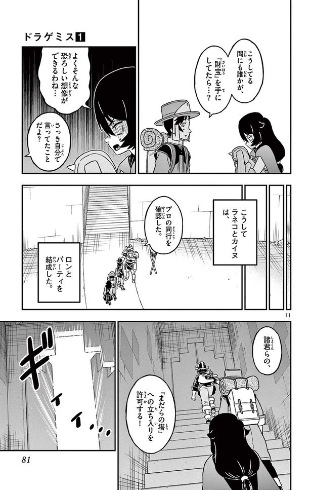 果てなくそびえる高き塔。その頂には「最果ての財宝」と呼ばれる宝が眠ると言われており、富や名声を得るため、あるいは己の実力を証明するために塔を登る冒険者は後を絶たない。しかし、生きて帰る者はおらず、頂に辿り着いた者は千年前を最後に現れていないという。臆病なあまり働く勇気がないラネコと、彼女を手助けする相棒のカイヌは、財宝を求めて不思議な塔に挑戦することに。駆け出し冒険者のふたりは、はたして伝説の財宝に辿り着けるのか――!? 勇気と絆が試されるドタバタ冒険コメディ『ドラゲミス』をお楽しみください!