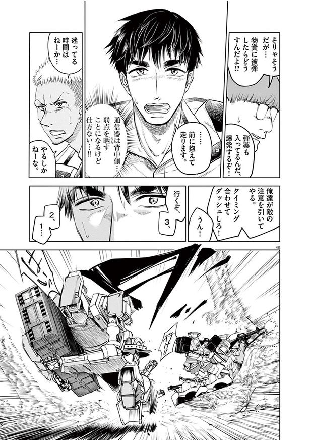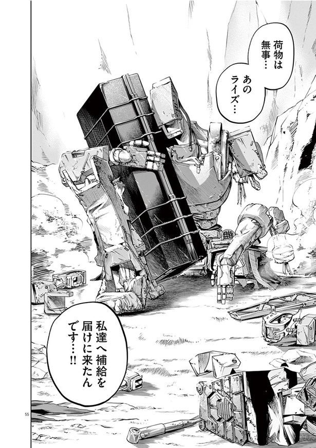 ついに目の前に現れた未知の生命体! 補給物資を届けるために主人公が取った行動とは?/バトルグラウンドワーカーズ(第1話)③