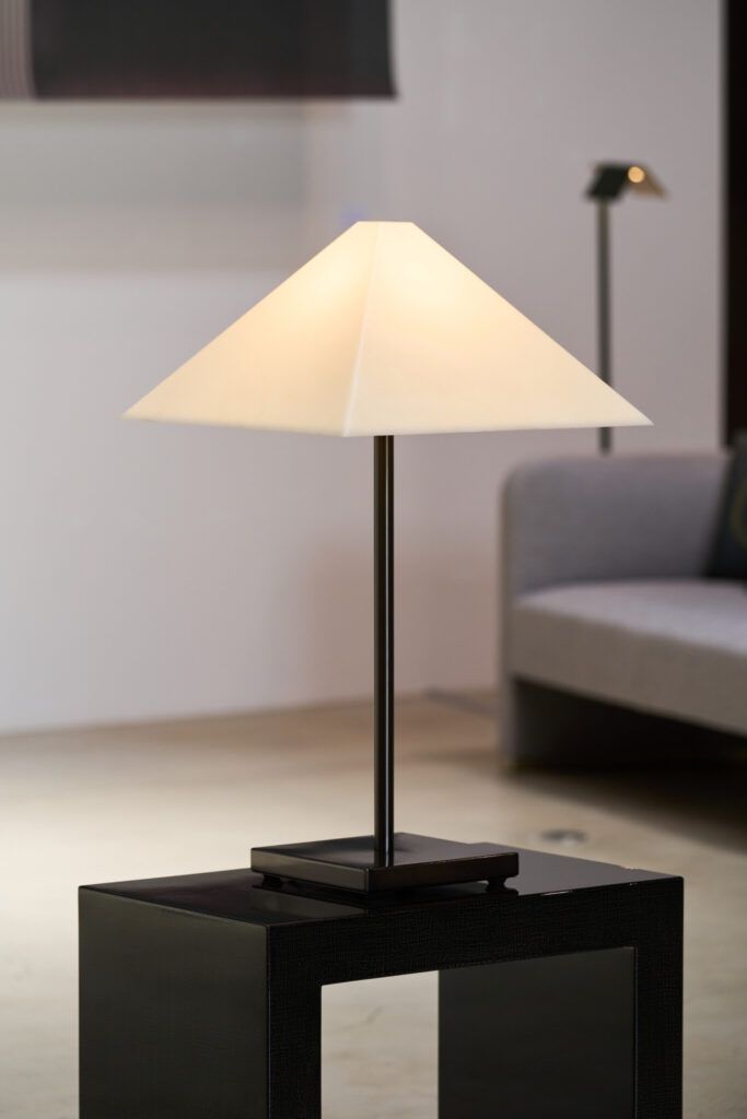本展の核となるのは、ブランドの原点にして象徴とも言える「ロゴ ランプ(Logo Lamp)」。1982年、ジョルジオ・アルマーニ自らがデザインしたこのデスクランプは、余計な装飾を削ぎ落とし、機能美を極めたフォルムを持つ。手元を柔らかく照らす光の諧調、視界を遮らない計算された構造。そこには、アルマーニが40年以上にわたって貫いてきた「装飾よりも構造を、主張よりも余白を」という哲学が凝縮されている。