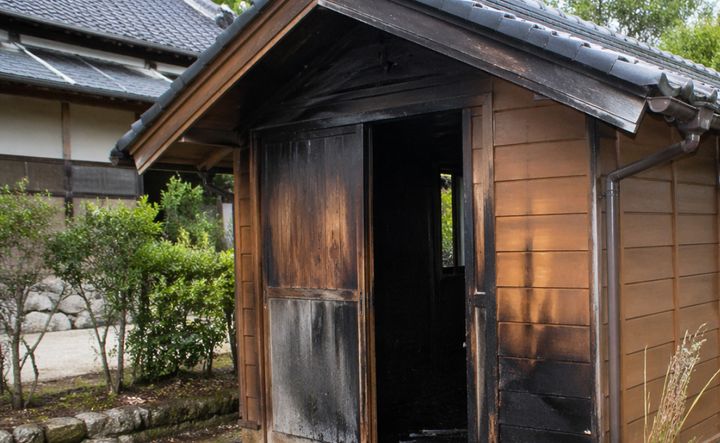 ほどなくして消防と警察が到着し、消防隊によって火元はすぐに消し止められました。大きな火柱が上がるような事態には至りませんでしたが、仕事部屋の壁や、一部の作品が黒く焦げてしまいました。