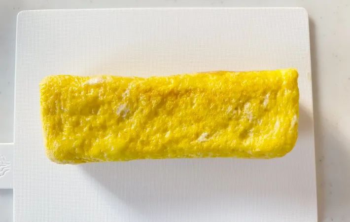 残りの卵液を全部流し入れ、最後まで巻いたら玉子焼きの完成です。