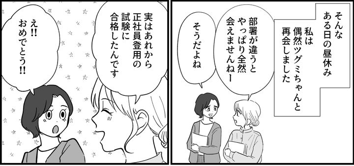 再会したツグミちゃんも正社員登用を勝ち取れたようで、あの日の彼女の決意を思い出し、心から祝福できました。