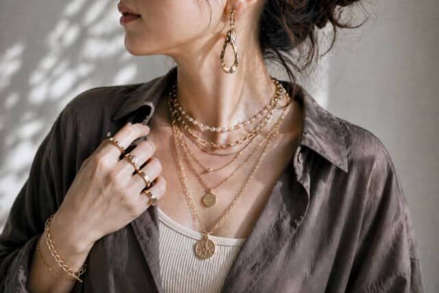 アクセサリーを重ねると華やかさは出ますが、その分コーデ全体の情報量が増え、視線が分散しやすくなります。ネックレスやリングがそれぞれ主張し始めると、どこに目を向ければいいのか曖昧になり、まとまりのない印象に見えがちです。