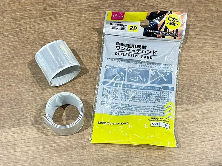 筆者は、100円ショップ『ダイソー』の『自転車用反射ワンタッチバンド(以下、ワンタッチバンド)』を購入しました。税込み110円です。