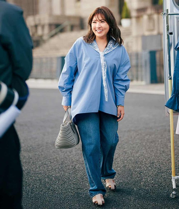 野呂佳代さん、春夏の「着ヤセ」は黒より「ブルー」!推しトップスでコーデ3選