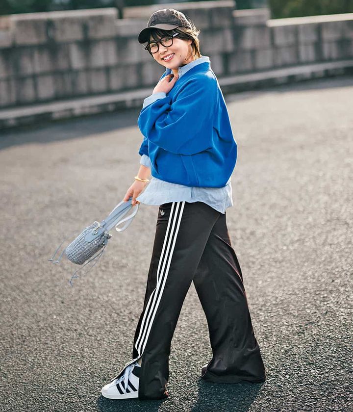 スウェットプルオーバー¥17,600(ELENDEEK)シャツ¥16,500(ノーク)パンツ¥12,100スニーカー¥14,300(ともにアディダス/アディダス コールセンター)バッグ¥35,200(ヌキテパ/パサンド バイ ヌキテパ)キャップ¥4,840(ニューエラ×ジーンズ ファクトリー/ジーンズ ファクトリー 卸団地本店)メガネ¥45,100(アイヴァン/アイヴァン 東京ギャラリー)バングル¥25,300(ワンエーアールバイウノアエレ/ウノアエレ ジャパン)リング¥23,100(ピニャッタ/ZUTTOHOLIC)