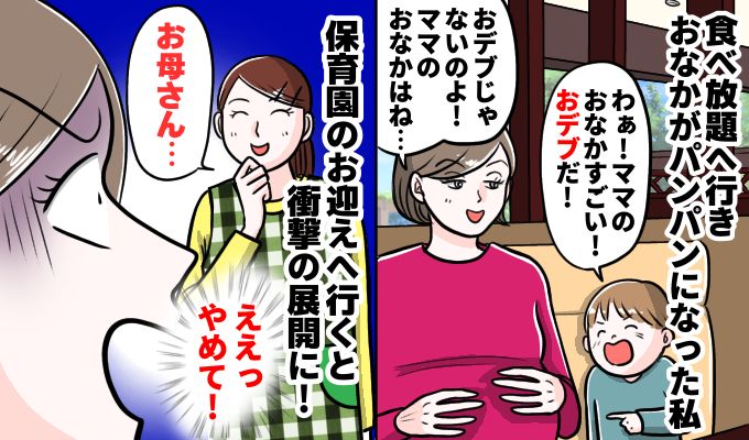その日は家族で食べ放題の外食へ行きました。食べ放題で、久しぶりの外食だったこともあり、私はたくさん食べてしまいおなかがパンパンに。その姿を見た長男が「ママのおなか大きい! おデブだ!」とひと言。私はその言葉に「おデブではありません! 大きな赤ちゃんがいるんです!」と冗談で何も考えず言ってしまいました。