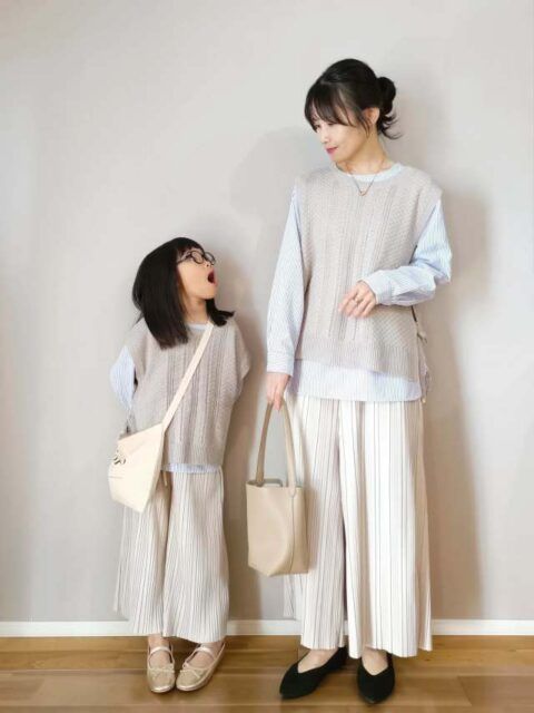 子連れのお出かけにライトトーンの親子リンクコーデ