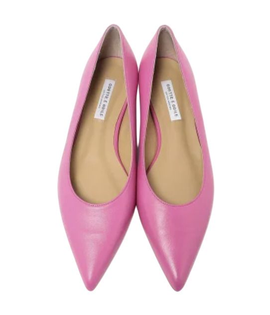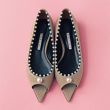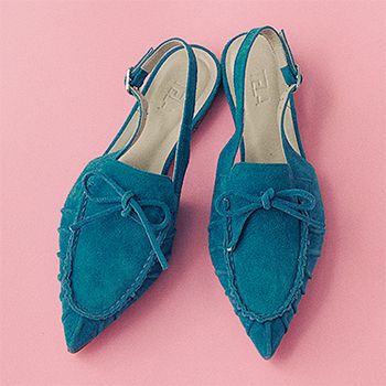 遊びのきいたレトロな色やデザインは、主張が強すぎないフラットなら装いの適度なアクセントに。大人っぽさを保てる、甲の部分がほっそりとしたスリムなフォルムがねらい目。