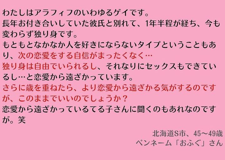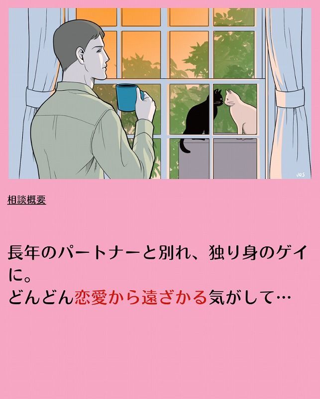 読者からのお悩み「長年のパートナーと別れ、独り身のゲイに。どんどん恋愛から遠ざる気がして…」