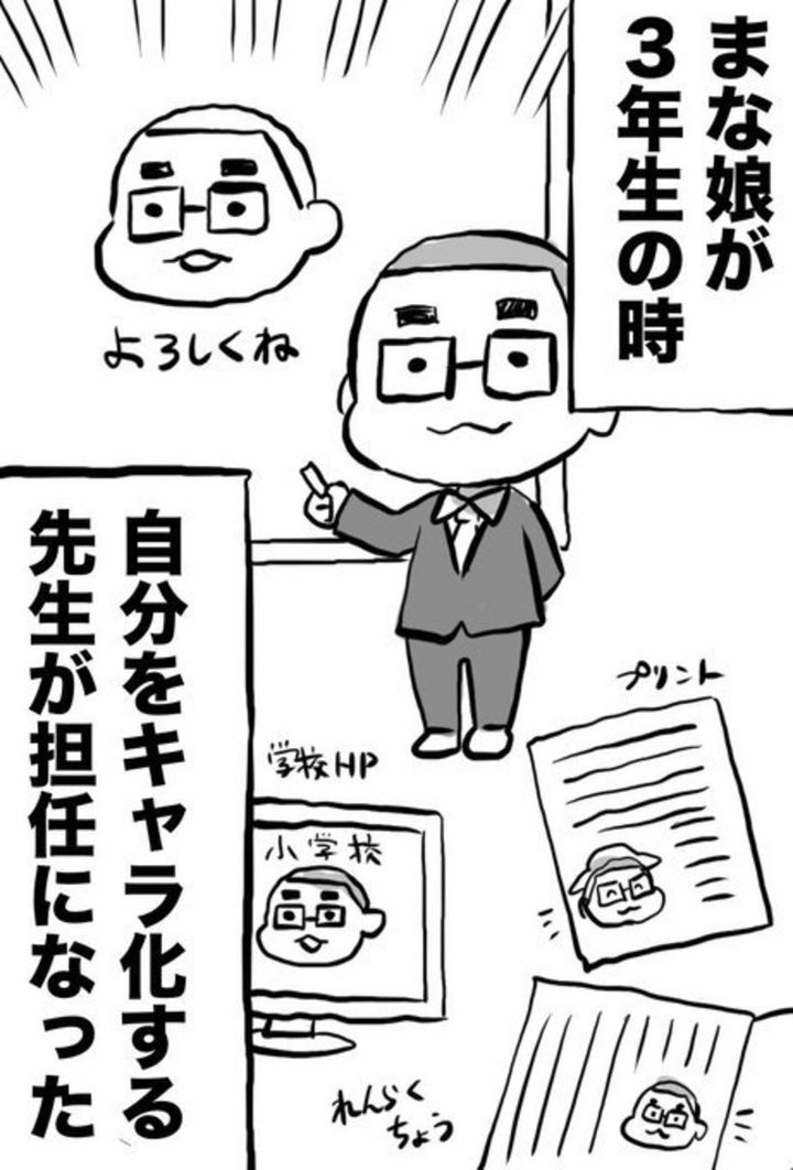 ユニークな先生ですよね。自分の似顔絵をキャラクター化して、あらゆる場面に登場させていたそうですよ。黒板の自己紹介から、配布プリント、学校のホームページ、連絡帳に至るまで、どこを見ても先生のキャラがしっかり存在しています。独特の世界観に思わずじわじわきてしまいますね。そして娘さんが自作の先生グッズを作成。進級のために次の学年では担任ではなくなってしまったそうですが、2年後に再び担任に。グッズの再販が決定!という、とっても楽しいエピソードでした。