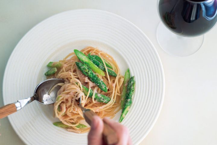 素材の瑞々しいおいしさを生かした春パスタには、白やオレンジ、軽めの赤を。