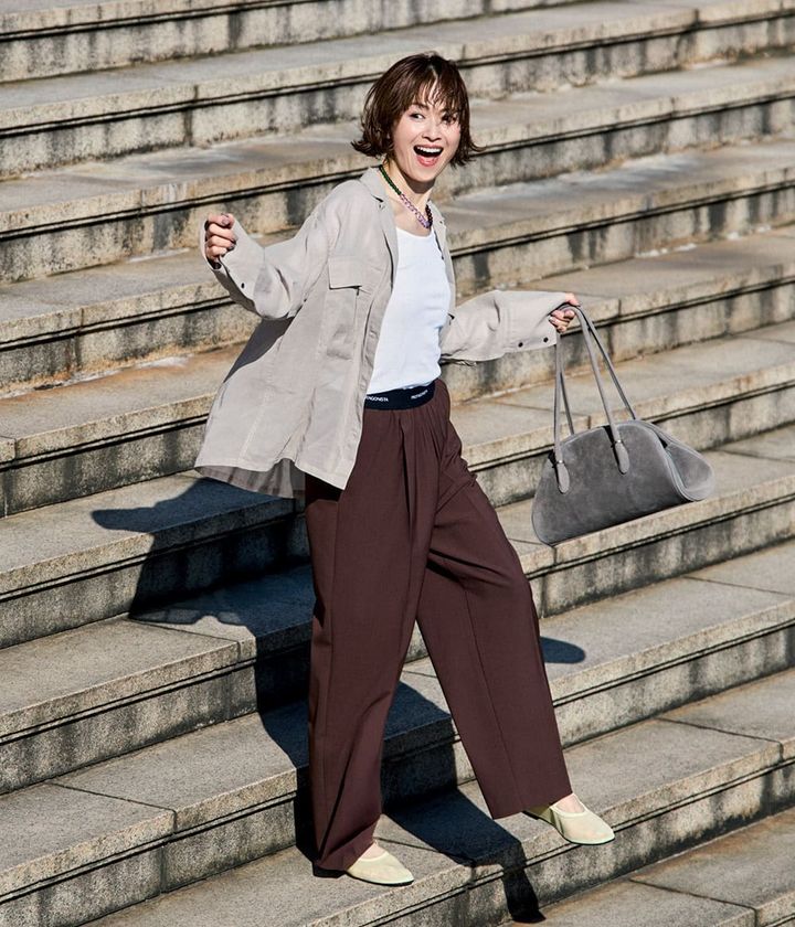 シューズ¥31,900 (ペリーコサニー/アマン)シャツ¥29,700(コンテ/コンテ 青山店)リブカットソー¥15,400(エイトン青山)パンツ¥29,700(プロタゴニスタ/アマン)バッグ¥54,600(アトリエ・ド・ルメン/アメスコテス)ネックレス¥41,800(アグラグラ/トゥモローランド)
