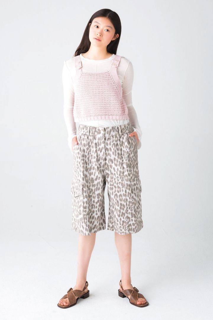 ベルトループやタックなど、スラックスのディテールを採用。ハーフパンツ ¥16,500(シティショップ TEL. 03・6696・2332) ローファー ¥31,900(シー ミー/シティショップ) ベスト ¥28,600(RHC/RHC ロンハーマン)