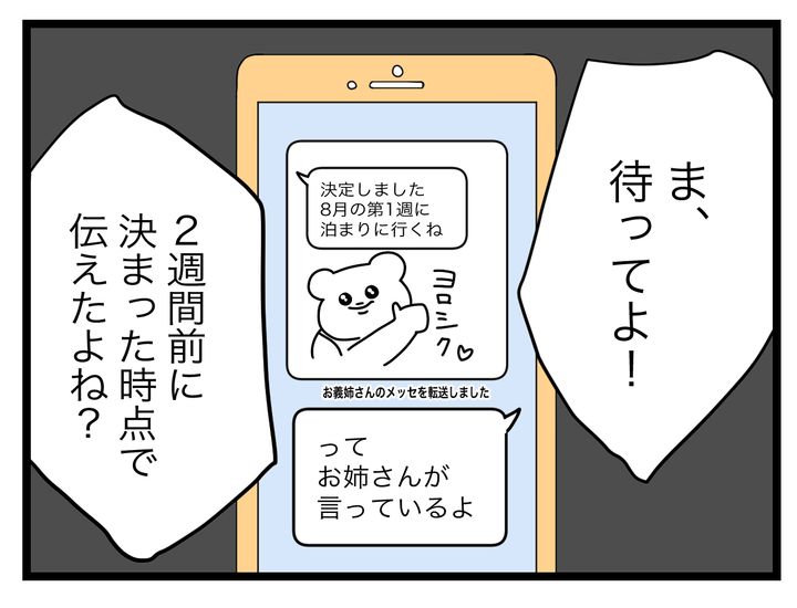 3. 「付き合い長いんだから俺の気持ち悟って?」夫の強気な返答にモヤモヤ…あなたの姉が泊まりに来るって言ってますけど!?