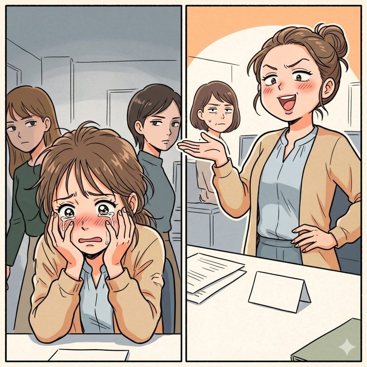 昨日までのマウント態度はどこへやら、彼女は職場でポロポロと涙を流し