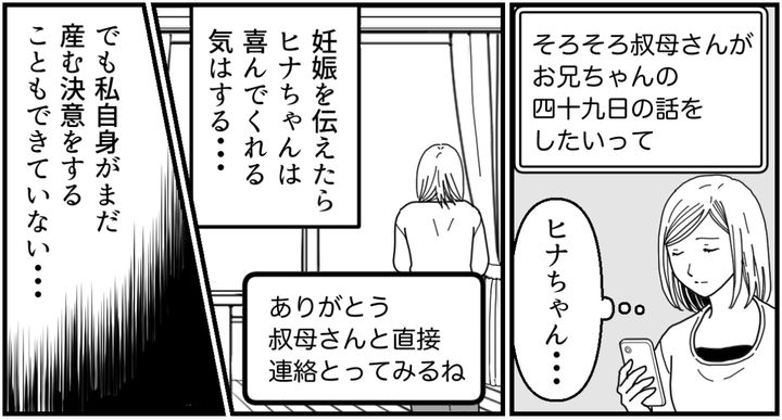 私たち夫婦はずっと子どもについて結論を先延ばしにしてきました。まさかこのタイミングで妊娠するなんて……。夫が亡くなったばかりの慌ただしさもあり、産む決意もしっかりできないまま流されるように日々を過ごしていました。