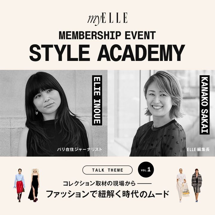 2026年6月11日(木)に開催するvol.1は、2026-27秋冬ファッショントレンドセミナー。パリ在住ジャーナリストの井上エリーさんとELLE 編集長の坂井佳奈子が、ファッションウィークの最前線から時代のムードや押さえておくべきキーワードを徹底解説。myELLEにログインして、この特別なイベントに奮ってご応募ください。