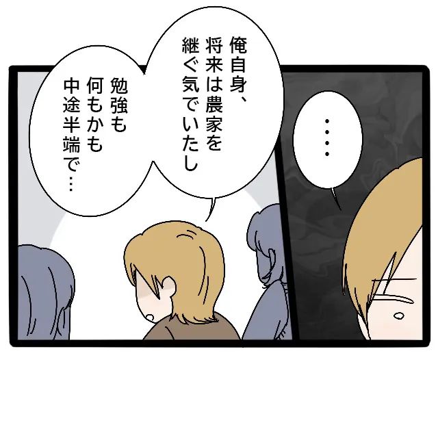 すると、ずっと言葉を飲み込んでいた兄がようやく口を開きました。「俺自身、将来は農家を継ぐ気でいたし、勉強も何もかも中途半端で・・・」