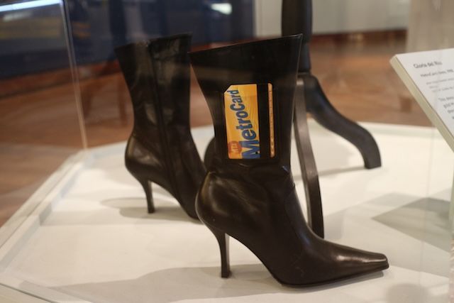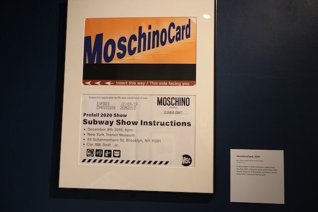こちらはイタリアの高級ファッションブランド MOSCHINO(モスキーノ) が、ニューヨークに敬意を表して制作した特別な招待状とプロジェクトの記録も展示されていました。メトロカードのデザインをパロディした「MoschinoCard」の巨大な模型、下部は実際のファッションショーの招待状です。