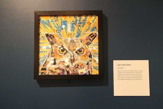 他にも、Juan Carlos Pinto(フアン・カルロス・ピント)による、メトロカードの断片を細かく切り貼りして作られた動物のポートレートが展示されています。彼は10年以上メトロカードを使ったコラージュを制作しており、最近はプロスペクト・パーク(ブルックリン)に生息する鳥をテーマにしていることで、これらの作品が作成されました。