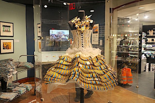 また1つ目のドレスと同じNina Vishneva(ニーナ・ヴィシュネヴァ)が手がけた作品をもう1つ。解説によると、彼女にとってメトロカードは「命綱(Lifeline)」だったんだとか。パネルに記された彼女の言葉は、非常に感動的です。