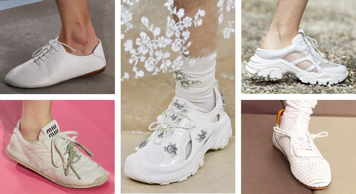 ついスニーカーのかかとを踏んで履き続けてしまう常習犯も、なかにはいるかもしれない。ブランドは今季、そのクセを見逃さず、バックレス・スニーカーというスタイルへと昇華させた。「ミュウミュウ」や「ドリス ヴァン ノッテン」といったブランドがさまざまなカラーでこのシルエットを展開しているが、とりわけホワイトのキレ味は格別。さっと履いてすぐ出かけられる理想的な一足で、きちんと感もあるためどんなコーデにも合わせやすい。素材が少ない分、通常のスニーカーより軽やかな履き心地も魅力。