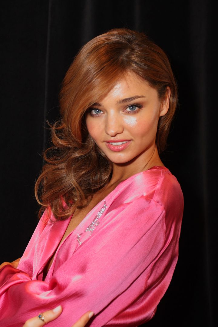 マイアミビーチで開かれたヴィクシーショーのバックステージで、アイコニックなピンクのローブを纏った1枚。ゴージャスなサイドパートのウェーブヘアと、内側から発光するようなツヤ肌は、まさにエンジェルそのもの。キュートさとセクシーさが同居する、ミランダ流ビューティの真骨頂。