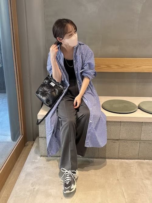 また、写真のようにシャツワンピースをガウンのように羽織ると、縦長効果を強調してくれるので着痩せに効果的。ワンピースの面積が広いことで生地のハリ感が感じられ、動きやすいカジュアルコーデが大人っぽい印象になるのもメリットです。