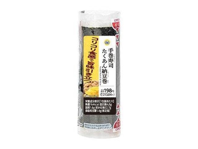 納豆のねばねばとした食感と、たくあんのコリコリとした食感が相性抜群の手巻寿司です。 【販売地域】東北・関東・九州