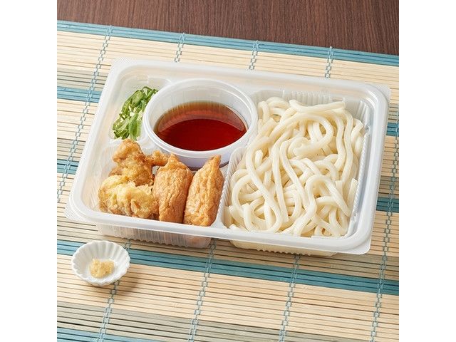 ざるうどんにいなり寿司と鶏天を組み合わた食べごたえのある商品です。 ※和歌山県の一部では取り扱いがございません。 関西で販売