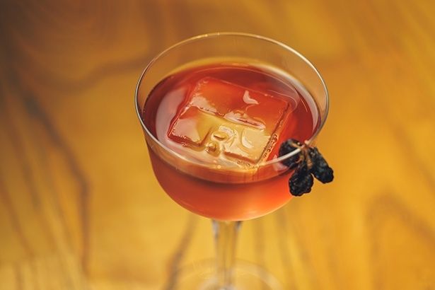 ロゼワイン「Rosé de Yoichi Cuvée Gastronomique (ロゼ・ド・ヨイチ キュベ・ガストロノミック)」をベースに、ベリーやオレンジが香るティバーナのティー・ラズベリー ライムエードを合わせ、コールド ブリュー コーヒーをフロートした美しい2層のカクテル。ロースタリー東京のロゴマークが刻印されたアイスキューブが、仕上がりのポイントだ。ワイン、ティー、コーヒーの香りが層になって広がり一体化する、唯一無二の味わいで、添えられたレーズンをつまみながら飲むのもいい。これ一杯をデザートカクテルとして楽しむのもおすすめだ。