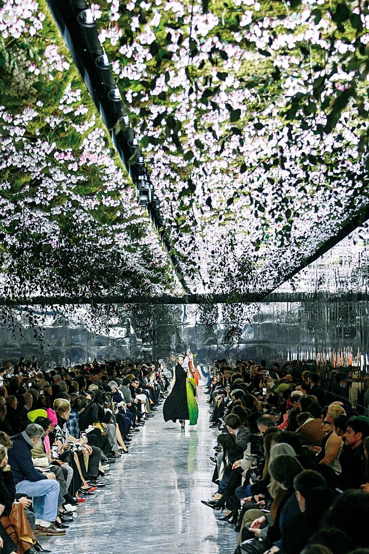 ジョナサン・アンダーソンは、初のクチュールにおいてメゾンが愛する花のモチーフに光を当てました。天井一面にシクラメンが咲く空間に、フォルム、プリント、クラフトワークなどで多彩に描き出したクチュールの花が開花。巧みな裁断と素材使いによってアーカイブを再構築し、優美ななかにアートなエッジが宿るルックに仕上げています。生命力に満ちた美しく力強いクリエーションでメゾンの未来を照らして。