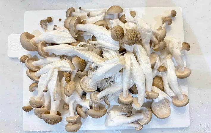 シメジは、石づきを切り落として小房に分けておきましょう。