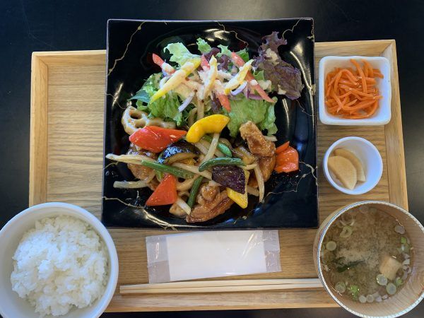 さすが米どころ、ごはんが美味しい♪ 野菜たっぷり、人参のラペもシャキシャキしてます。