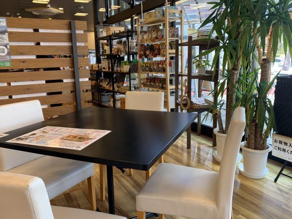 お店の前には、テーブルとイスも置かれていて、お弁当を食べたり、ソフトクリームやコーヒーをテイクアウトして休憩したりもできますね。