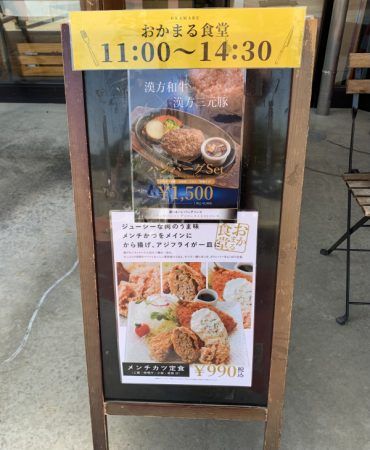 ちょうどお昼時だったので、入口のこの案内にまねかれるように、マルシェの中にある「おかまる食堂」へ直行です。