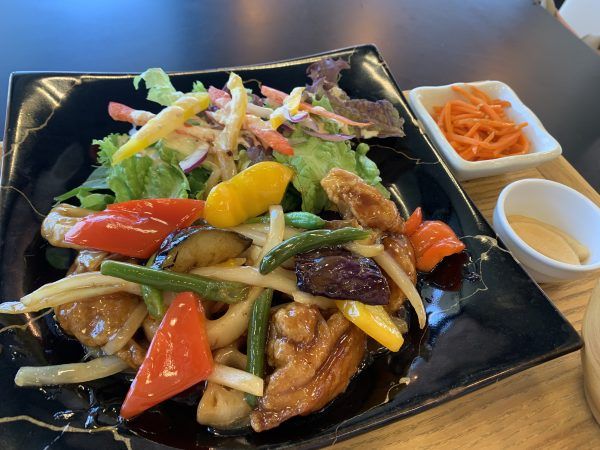 黒酢あんもコクがあって、チキンも大きくて、パプリカやナスやレンコンも入ってて、彩りの良さに箸がどんどん進みます♪ 美味しい!
