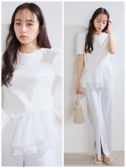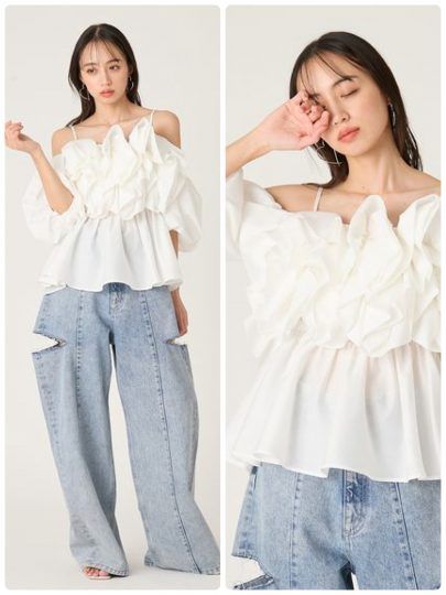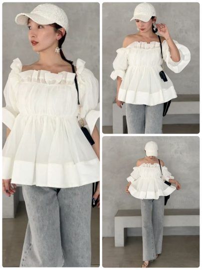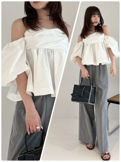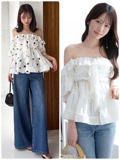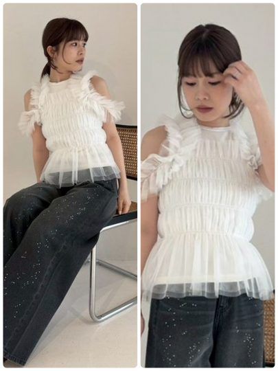 3. オフショル、チュールetc.これからの時期にいちばん使える【甘白トップス】10選