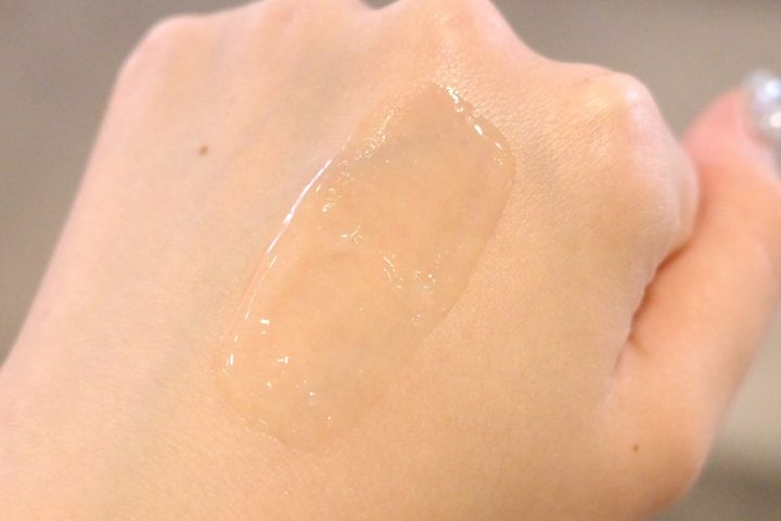 手に取ってみるとゼリーのような濃密感あるテクスチャーで、肌になじませていくとうるおいが閉じ込められたようなハリ・ツヤのある肌になりました。