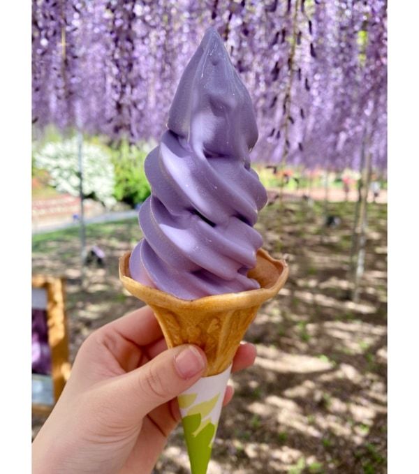 ◎藤ソフト あしかがフラワーパークスイーツの絶対的エース。甘く華やかな藤フレーバーのソフトクリームです。