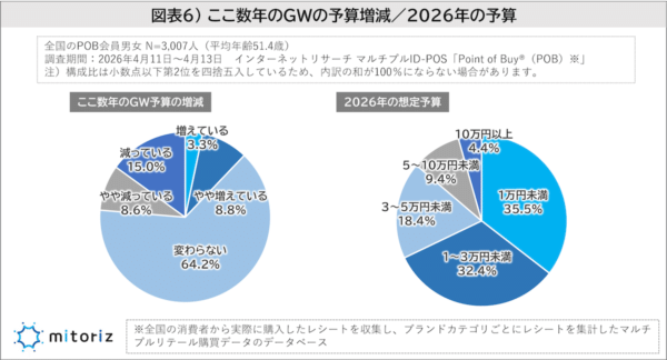 mitorizはこのほど、消費者購買行動データサービス「Point of Buy®(POB)」の会員3,007人を対象に「大型連休に関する調査2026」を実施しました。